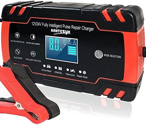12V/24V 8Amp Car Battery Charger, Automatic Smart Battery Charger with Temperature Compensation, Intelligent Charges, Repairs, Maintains Lead Acid Batteries, Car, Motorcycle, Boat Mower Battery :