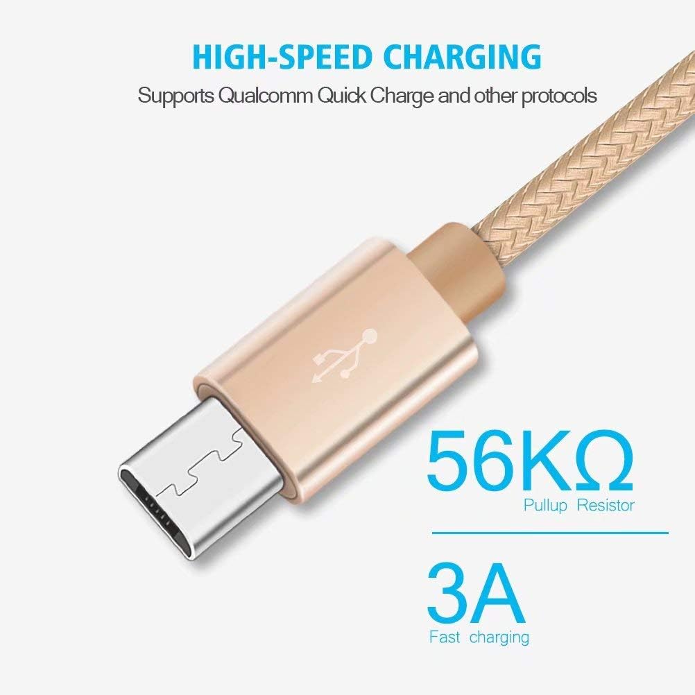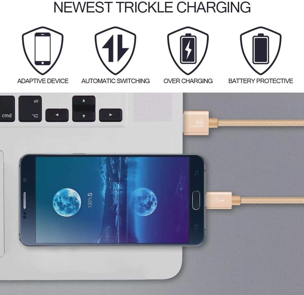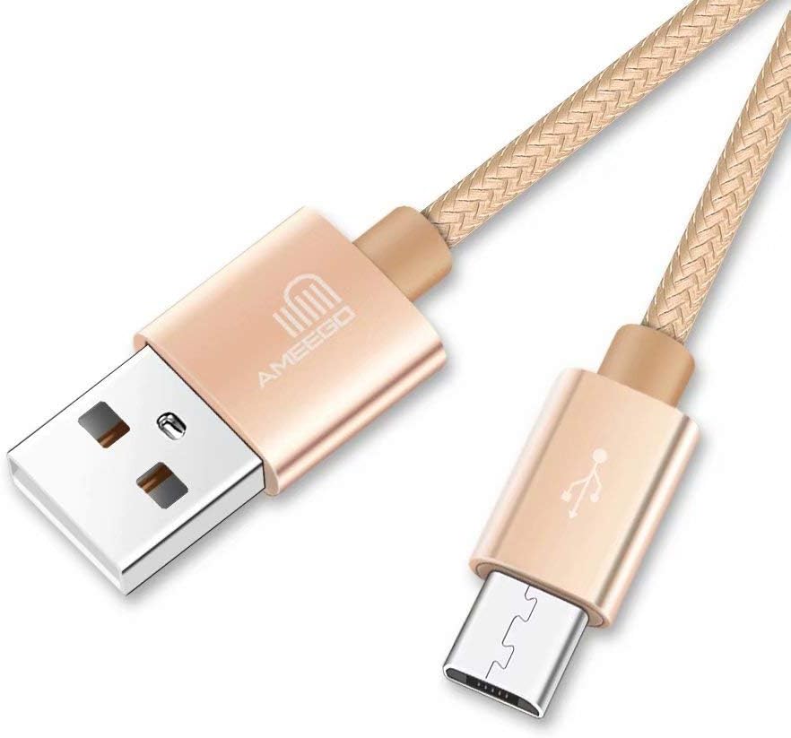 Ameego High Speed Nylon Braided Micro USB Cable 3-Pack Gold