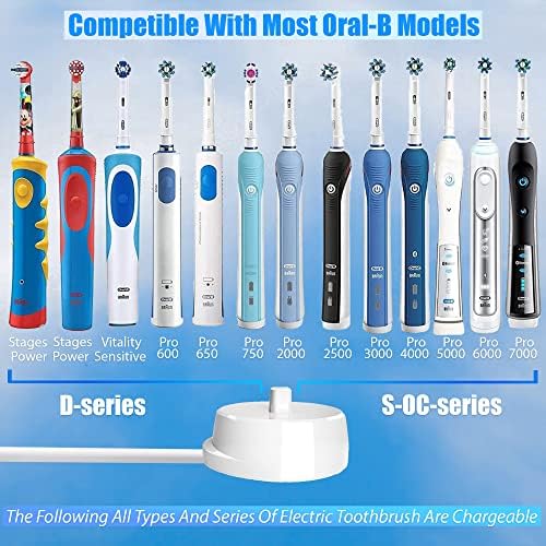 - ✔️Wide Compatibility: Electric toothbrush charger for Oral b Pro 600/650 Pink/670/690/700/750/770/760/2500 N/6000N/7000N/8000/4000N, for Oral b Pro 2 2500, for Oral b Vitality, for Smart Series Oral-B Pro Health, for Genius series, and for other all models, perfect replacement for the Model 3757 original charger.