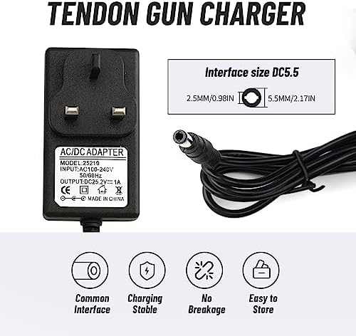 - [Efficient Charging]: Input: 100-240V AC, Output: 25.2V. This power adapter provides a stable and consistent power supply to charge your muscle massagers devices.