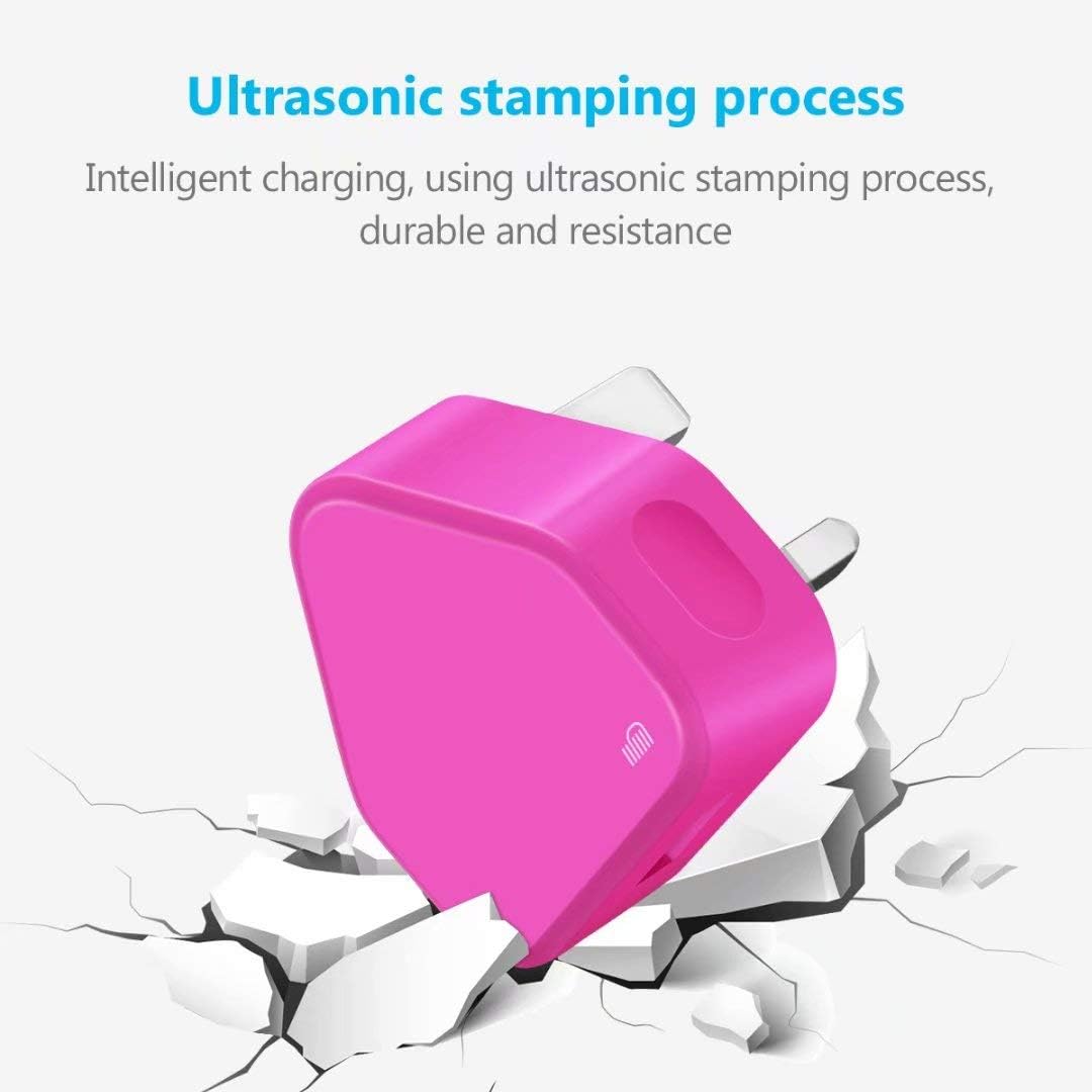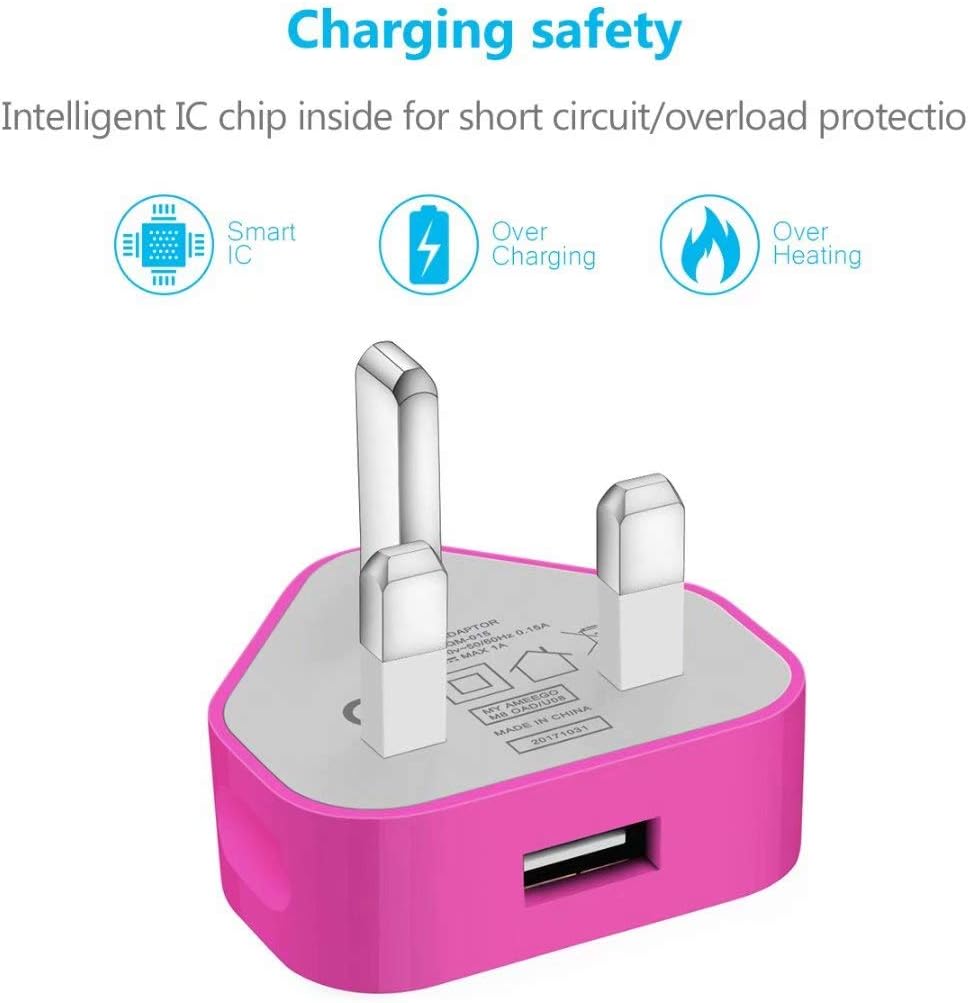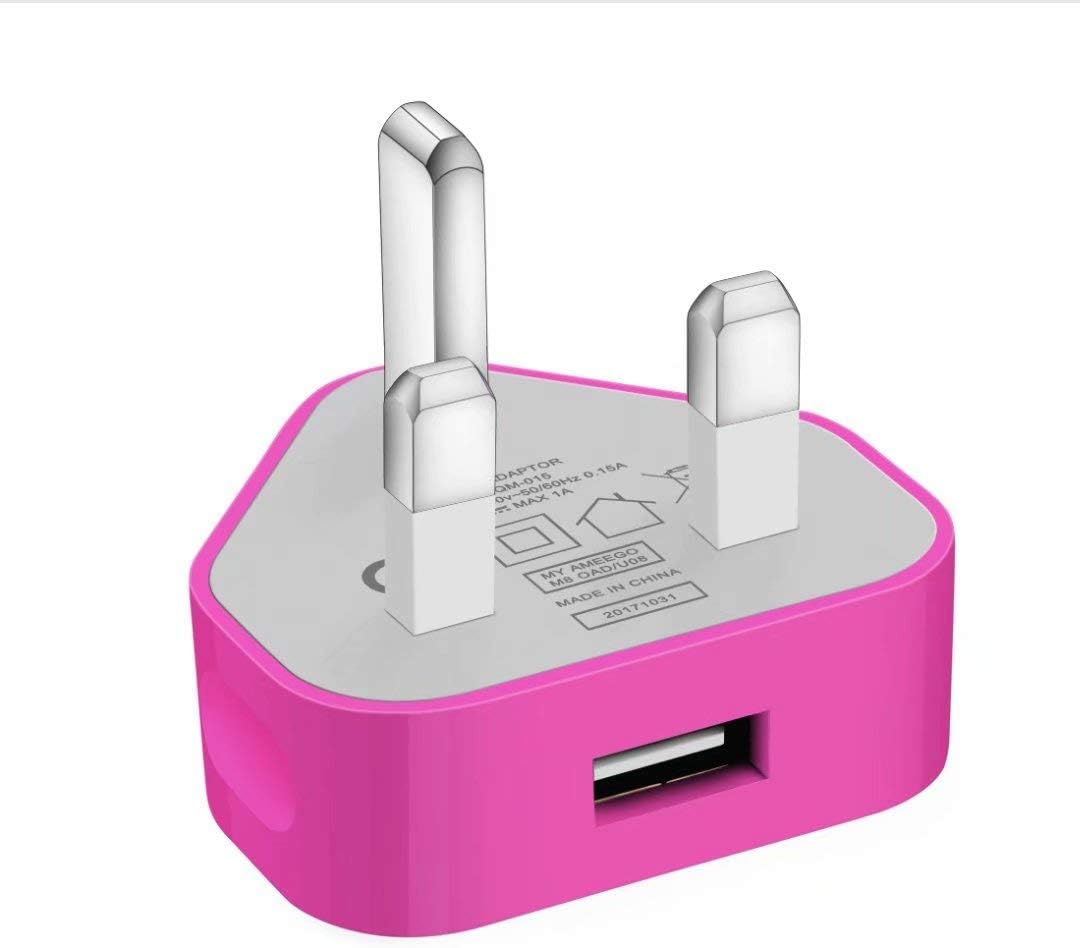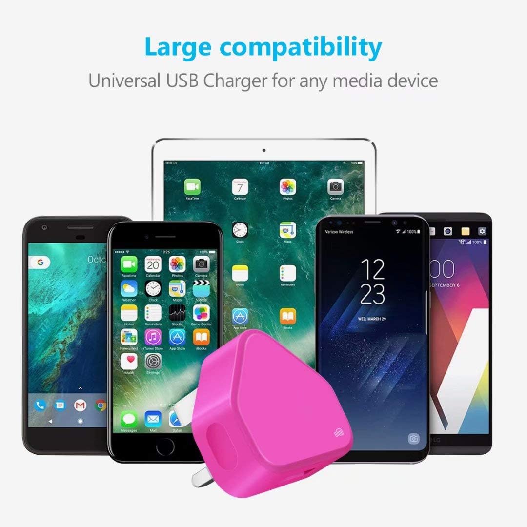 AMGO USB Compact UK Mains Charger 1000mAh for Mobile Phones iPhone Samsung Galaxy – Hot Pink